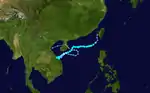 Tropical Storm Wendy, which formed on August 28 in the open Western Pacific, quickly intensified to a peak of 160 mph winds on the 31st. It steadily weakened as it moved westward, and passed by southern Taiwan on September 5 as a minimal typhoon. Wendy continued to weaken, and after crossing the South China Sea, Wendy dissipated over northern Vietnam on the 9th.