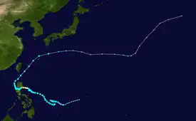 Olga (Didang)May 11 – 27Typhoon185 km/h (115 mph)940 hPa (27.76 inHg)Philippines, Ryukyu Islands Unknown374