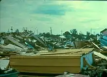| F3 | Grand Island | Hall | NE | 40°58′N 98°21′W / 40.97°N 98.35°W | 0205–0230 | 2.3 mi (3.7 km) | 500 yd (460 m) | 1 death – Tornado touched down north of Grand Island and moved into the city near Airport Road, between US 281 and Webb Road. Third of seven tornadoes to hit the city in just over two hours. The tornado injured 40, killed one, and caused an estimated $2.5 million in damages. Although most damage was rated F0, several homes were heavily damaged and some F3 damage was noted near the veteran's home, which had windows blown out. Second of three anticyclonic tornadoes. While the path is officially listed as 2.3 miles (3.7 km), the distance covered by the tornado was 3.5 miles (5.6 km) due to its curving nature.[3][4] |