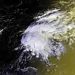 By September 28, the organization of the depression deteriorated further due to strong vertical wind shear.[69] The center of the depression again became difficult to location by infrared images early on September 29.[70] Later that day, a few computer models indicated a decrease in wind shear over the depression within two days, thus, it was predicted to strengthen into a tropical storm.[71] However, wind shear exposed the center of the depression again by early on September 30, though it was still forecast to intensify to tropical storm status.[72] By late on October 1, satellite imagery noted that the depression dissipated, and the National Hurricane Center issued its final advisory on the system.[65][73]
