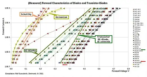 - ↑ "Semiconductor Diode & Rectifier Characteristics Tabulation". Derivation and Tabulation Associates. April 1961. p. 209.