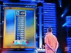 In the Australian version, the podiums count up 1–100 from the top row, not the bottom row, as in the US version.