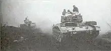 Maczek's division had the crucial role of closing the pocket at the escape route of the trapped German divisions, hence the fighting was desperate and the 2nd Polish Armoured Regiment, 24th Polish Lancers and 10th Dragoons, supported by the 8th and 9th Infantry Battalions, took the brunt of German attacks by units attempting to break free from the pocket. Surrounded and running out of ammunition, they withstood incessant attacks from multiple fleeing panzer divisions for 48 hours until they were relieved. The total losses of the division from August 7 when it entered combat until the end of the battle of Falaise on August 22 were 446 killed, 1501 wounded, and 150 missing, or 2097 soldiers in total during about two weeks of fighting.[3]
