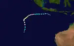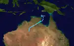 Sam originated from a tropical low that formed in the Arafura Sea on 28 November. Tracking generally westward, the initial low-pressure area remained generally weak until it entered the Timor Sea, by which time it had strengthened into a tropical cyclone on 5 December. Though a subtropical ridge was forcing the cyclone westward at the time,[2] an approaching shortwave trough caused Sam to track southward the following day, towards the Australian coast.[3][4] During its southward progression, Sam rapidly intensified, and reached its peak intensity on 7 December.[2][3][4] The next day, the storm made landfall near Lagrange, Western Australia at the same intensity.[5] Once inland, Sam was slow to weaken as it recurved eastward, and persisted for nearly a week inland before dissipating on 14 December.[4]