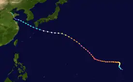 On March 6, meteorologists from University College London at TropicalStormRisk.com issued a forecast for the season for above average activity, since sea surface temperatures were expected to be slightly warmer than usual; the group used data by the Joint Typhoon Warning Center (JTWC), and compared the potential 28.6 storms to the 30-year average of 26.3.[2] The group raised the number of predicted storms in April to 29.6, and again in early May to 30.5.[3][4] They ultimately overestimated the number of storms that would form.[5] The Laboratory for Atmospheric Research at the City University of Hong Kong also issued a season forecast in April 2002, predicting 27 storms with a margin of error of 3, of which 11 would become typhoons, with a margin of error of 2. The agency noted a stronger than normal subtropical ridge over the open Pacific Ocean, as well as ongoing El Niño conditions that favored development, but expected below-normal development in the South China Sea.[6] These predictions proved to be largely accurate.[7]