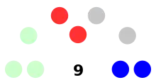 | Independent | 0 | 0 | 2 | 2 | 22.22% | |