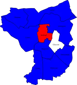 Map of the results of the 2007 Tamworth council election. Conservatives in blue, Labour in red and independent in white.