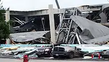 The explosion damaged 100,000 square feet (9,300 m2) of the facility, concentrated in the southern part of the plant where packing operations were conducted, and triggered a leak from the plant's refrigeration system, causing the release of about 18,000 pounds (8,200 kg) of ammonia.[4][2] Emergency responders calculated the ammonia levels at 20 parts per million outside the plant.[2] It also set small fires around the facility grounds.[7] Over 200 workers were inside the plant at the time of the explosion.[6] One member of ConAgra's safety team ran back into the plant to rescue a co-worker and was killed by falling debris.[8]