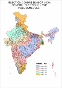 The polling schedule for the 2009 General Elections was announced by the Chief Election Commissioner on 2 March 2009.[10]