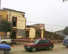 At Pichilemu, the epicentre town, the earthquakes destroyed the balustres surrounding Agustín Ross Park, damaged severely the recently re-inaugurated Agustín Ross Cultural Centre, and the Espinillo, and Rodeillo villages.[38][44] The earthquake was accompanied by "great noise", according to witnesses from the Pichilemu villages of Cardonal de Panilonco and La Aguada;[17] most of the already damaged buildings in La Aguada fell down, including the local church. The road to Cardonal de Panilonco was damaged, and many houses built with adobe did not resist the shaking.[45]