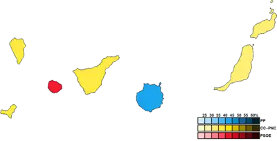 ![]() Constituency results map for the Parliament of the Canary Islands | ||||||||||||||||||||||||||||||||||||||||||||||||||||||||||||||||||||||||||||||||||