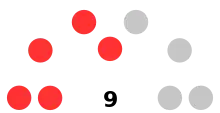 | Republican | 9 | 4 | 5 | 20.00% | |