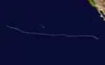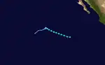 A tropical wave, the same responsible for Tropical Storm Barry in the Atlantic, moved across the eastern Pacific in late June, yielding a broad area of low pressure by June 21. Northwesterly shear initially hindered development of the system, but a subsequent decrease in upper-level winds, as well as the passage of an eastward-moving kelvin wave, led to the formation of a tropical depression by 12:00 UTC on June 23; twelve hours later, the depression intensified into Tropical Storm Cosme. Steered northwest and eventually west-northwest, the cyclone intensified amid favorable atmospheric dynamics, becoming a minimal hurricane by 12:00 UTC on June 25 and attaining peak winds of 85 mph (135 km/h) twelve hours later. A track over cooler waters and into an increasingly stable environment caused Cosme to weaken to a tropical storm by 18:00 UTC on June 26 and further degenerate into a remnant low by 12:00 UTC the next day while located about 690 mi (1,110 km) west-southwest of Cabo San Lucas, Mexico. The remnant low tracked westward prior to dissipating well east-southeast of the Hawaiian Islands on July 1.[28]