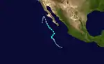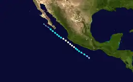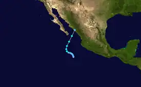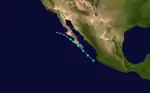 The season's first tropical storm formed on May 15,[8] coinciding with the official start of the Pacific hurricane season.[9] On average, a tropical cyclone develops in May in the eastern Pacific every other year.[10] The formation of Barbara in late May marked only the fifth time since 1949 that two tropical storms formed during the month, with the other seasons being 1956, 1984, 2007, 2012, and 2021.[11][12][13]