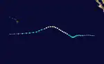 A tropical wave emerged off the western coast of Africa on July 19 and reached the East Pacific on July 26. Embedded within the Intertropical Convergence Zone, convection slowly coalesced about an area of low pressure, leading to the formation of a tropical depression by 12:00 UTC on August 3; twelve hours later, the depression intensified into Tropical Storm Henriette while located about 1,800 mi (2,900 km) southwest of the southern tip of Baja California. The system initially moved west-southwest following formation, but turned toward the west-northwest as it reached the western periphery of a mid-level ridge to its north. Amid a favorable environment, Henriette steadily intensified, becoming a Category 1 hurricane by 06:00 UTC on August 6 and unexpectedly attaining peak winds of 105 mph (170 km/h) by 18:00 UTC on August 8. The hurricane quickly weakened over increasingly cool waters as it resumed its southwesterly track into the Central Pacific, weakening to a tropical storm early on August 9 and further to a tropical depression two days later. By 18:00 UTC on August 11, the effects of increasing wind shear caused Henriette to degenerate into a remnant low while positioned roughly 430 mi (690 km) south of Kailua-Kona, Hawaii. The remnant low drifted west-southwest until dissipating the next day.[65]