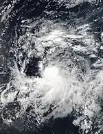 Posing a considerable rainfall and mudslide threat to Guatemala, classes were suspended in nine school districts, impacting 1.25 million pupils.[27] Similarly, some classes were suspended in the Mexican states of Chiapas and Oaxaca.[28][29] In the former, roughly 16,000 people were evacuated out of hazardous areas.[30] Most of the impacts associated with Boris were due to its developing precursor, whose heavy rainfalls caused 20 mudslides, killing five and resulting in extensive property damage.[27][31] Heavy rainfall in Chiapas caused rivers to overflow their banks,[32] resulting in minor damage.[33] Overall, the effects of Tropical Storm Boris and its precursor killed six people across Central America.[27][34]