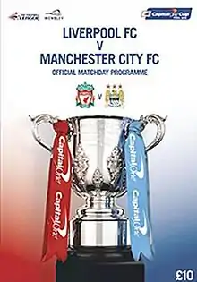 The 2016 Football League Cup Final was a football match played at Wembley Stadium, London, on 28 February 2016 to determine the winner of the 2015–16 Football League Cup, the 56th edition of the Football League Cup, a competition for the 92 teams in the Premier League and Football League. It was contested by Liverpool and Manchester City, with Manchester City winning 3–1 in a penalty shoot-out after the match had finished 1–1 after extra time.[1] They would have qualified for the Third Qualifying Round of the 2016–17 UEFA Europa League, but they ultimately qualified for the 2016–17 UEFA Champions League instead by virtue of their league position.[2]