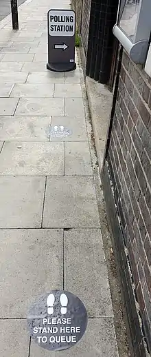 Social distancing measures outside a polling station in Highgate, London, 6 May 2021