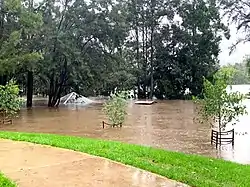 Floodwaters swamp a picnic area in western Sydney.