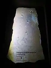 • Friedrich von Huene named the ichnogenus Coelurosaurichnus for small three-toed carnivorous dinosaur tracks discovered in northern Italy.[59]