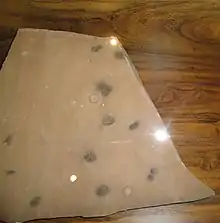 • Earl L. Poole of the Public Museum and Art Gallery discovered a new Late Triassic dinosaur track site at a quarry near Schwenksville, Pennsylvania.[44] The dozens of tracks preserved there were mostly left by chicken-sized dinosaurs, but about a "half dozen" of them were left by turkey-sized trackmakers.[55] Poole ascribed these tracks to the ichnogenus Anchisauripus. One footprint was left by a dinosaur with about the same body mass as a horse.[45] This site is now known as the Squirrel Hill Quarry.[44]