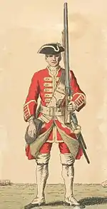 During the Seven Years' War, it was part of the force under James Wolfe that captured Louisbourg in 1758, allegedly earning the nickname "Wolfe's Own".[7] It was also present at the 1759 Battle of the Plains of Abraham, the Battle of Sainte-Foy and the subsequent siege of Quebec in April to May 1760. It then took part in the final and decisive campaign between July and September 1760 when Montreal fell. The regiment returned to Britain when the war ended in 1763.[8]