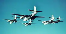 Shortly after the fighting in the Ardennes, the squadron was withdrawn from combat to convert from the Marauder to the Douglas A-26 Invader. It flew missions with its new plane from Sint-Truiden Airfield, Belgium through May 1945.[3] The squadron's last mission was on 3 May, an attack on the Stod Ammunition Plant in Czechoslovakia.[11] After V-E Day the squadron remained in Belgium until July, when it returned to the United States, inactivating at Westover Field, Massachusetts on 7 November 1945.[2][3]