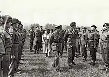 The 7th (Light Infantry) Parachute Battalion was formed, in November 1942, by the conversion of the 10th Battalion, Somerset Light Infantry, a war service battalion created two years earlier, to parachute duties. The battalion was assigned to the 3rd Parachute Brigade, originally part of the 1st Airborne Division but later transferred to the 6th Airborne Division.[7] When the 1st Canadian Parachute Battalion arrived in Britain, it was assigned to the 3rd Parachute Brigade and the 7th Parachute Battalion was transferred to the 5th Parachute Brigade, which was also a part of the 6th Airborne Division.[8]