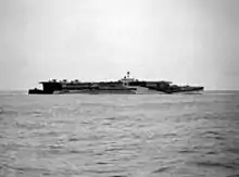 The squadron embarked on Ark Royal in June 1941 to provide cover for the Malta Convoys. Aircraft of 825 Squadron carried out raids on targets in Pantellaria, Sardinia and Sicily in September.[8] A number of the squadron's aircraft were lost in the sinking of Ark Royal on 14 October. The remainder flew to Gibraltar, where the squadron was disbanded. It was re-formed with Fairey Swordfish at RNAS Lee-on-Solent in January 1942, and tasked with a torpedo bomber reconnaissance duties.[8] Six of the squadron's aircraft flew off from RAF Manston to attack Scharnhorst and Gneisenau and the heavy cruiser Prinz Eugen in the English Channel, as they carried out Operation Cerberus. The attacking aircraft failed to score any hits, and all six were lost.[8] The Commanding Officer—Eugene Esmonde—was posthumously awarded the Victoria Cross. Five of the aircrew survived, and were also decorated.[4][8]