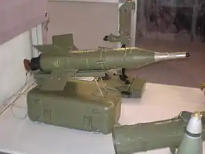 The 9M14 Malyutka (Russian: Малютка; "Little one", NATO reporting name: AT-3 Sagger) is a manual command to line of sight (MCLOS) wire-guided anti-tank guided missile (ATGM) system developed in the Soviet Union. It was the first man-portable anti-tank guided missile of the Soviet Union and is probably the most widely produced ATGM of all time—with Soviet production peaking at 25,000 missiles a year during the 1960s and 1970s. In addition, copies of the missile have been manufactured under various names by at least six countries.