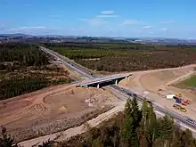 In November 2011, the Scottish Government announced that it would upgrade the entire road from Perth to Inverness to dual carriageway.[19] The design contract was split into three lots with Lot 1 (Glengarry to Dalraddy) awarded to a CH2MHill/Fairhurst joint venture in April 2014.[20] Lot 2 (Pass of Birnam to Glengarry) was awarded to Jacobs in August 2014[21] and Lot 3 was awarded to an Atkins/Mouchel joint venture in December 2014.[22] Award of the construction contract for a preliminary section (outwith Lots 1 to 3) of the £3 billion project was awarded in June 2015,[23] and work began on the 5 mi (8 km) section between Kincraig and Dalraddy (just south of Aviemore) in September 2015. After a slight delay, this section was opened to traffic on 30 September 2017.[24] The full scheme was originally scheduled for completion in 2025,[25][26][27] but in December 2023 this deadline was postponed by a decade to late 2035.[28]