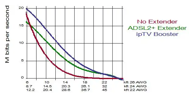 A DSL loop extender is a device that a telephone company can place between subscriber premises equipment and central office interfaces to extend the distance and increase the channel capacity of digital subscriber line (DSL) connections. ADSL repeaters are deployed by rural telephone companies trying to provide rural Internet service to farms and small towns where it is impractical to place the DSLAM closer to the subscriber. Typical distance improvements with a loop extender are shown in the diagram below, with rate in megabits per second and distance in thousands of feet.[1]