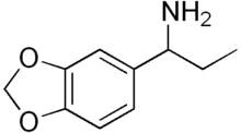 ALPHA (alpha-ethyl-3,4-methylenedioxybenzylamine) is a lesser-known psychedelic drug and a substituted benzylamine. It is also the benzylamine analog of 3,4-methylenedioxyamphetamine (MDA). ALPHA was first synthesized by Alexander Shulgin. In his book PIHKAL on the MDA page, the threshold dosage is listed as 10 mg.[1] At mild threshold dosages (around 10 mg) there are eyes-closed "dreams" with some body tingling, at higher doses (up to 140 mg) was reported to produce a pleasant, positive feeling. This compound is not anoretic at any dose. It lasts about 3 hours. Very little data exists about the pharmacological properties, metabolism, and toxicity of ALPHA.