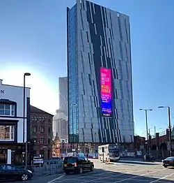 AXIS (also known as the Axis Tower) is a residential tower in Manchester city centre, England.[5] The tower has had two iterations, one as a stalled construction project which was cancelled due to the Great Recession in 2008, and the other as residential which was announced in 2014. When completed in 2019, Axis Tower became the seventh-tallest building in Greater Manchester until the completion of the Deansgate Square and Angel Gardens projects. As of July 2023, it is the 21st-tallest.