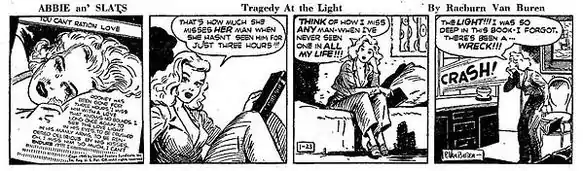 Abbie an' Slats is an American comic strip which ran from July 12, 1937, to January 30, 1971, initially written by Al Capp and drawn by Raeburn Van Buren.[1] It was distributed by United Feature Syndicate.[2]