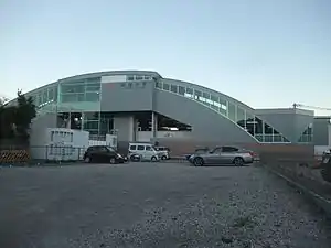 The station has two side platforms serving Track 1 and Track 2, with the station building connecting the platforms. The station building has automated ticket machines, TOICA automated turnstiles and a staffed ticket office.