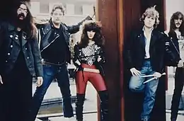 Guitarist Demon, singer Kate de Lombaert and bassist T-Bone started the band as Precious Page, which was renamed Acid in 1980. Shortly after, Anvill joined as drummer. When Dizzy Lizzy joined the band as the second guitarist, the band recorded its first single.[3] It was released in July 1982 under the name "Hell on Wheels" through Roadrunner Records. The first self-titled album followed in January 1983. The second album Maniac followed the same year,[4] followed by the third album Engine Beast in 1985. Shortly after this, the band broke up. During their career, the band played in Belgium, the Netherlands and France and performed with groups such as Black Sabbath, Manowar, Loudness, Venom, Picture, Bodine and Motörhead.[5] In 2019, the band reformed once again.