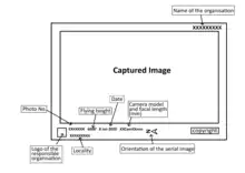 An aerial photograph marks different data and information about the covered area and the airplane's position and condition.[2] These details are measured and noted by the data panel which includes different devices and instruments for the specific measurements.[2] Figure 8 shows the general format of a vertical aerial photograph.