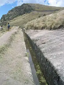 The ancient people of Peru built water-moving and preserving technologies like the aqueducts of Cumbe Mayo (c. 1500 BCE) and the Nazca's underground aqueducts called Puquios (date uncertain), or the terraced gardens of the Huari. Aqueducts were also utilized by the Moche.[6]
