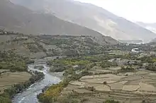 Ahmad Shah Massoud was born in 1953 in the small village of Jangalak, Bazarak in the Panjshir Valley (now administered as part of the Panjshir Province), to a well-to-do family native to the Panjshir Valley.[23][24] Massoud's name at birth was 'Ahmad Shah' after King Ahamad Shah Durrani, founder of the modern, unified state of Afghanistan, later taking the name 'Massoud' as a nom de guerre in 1974 when he joined the resistance movement against the forces of Daoud Khan.[24][25] Massoud's father, Dost Mohammad, was a colonel in the Royal Afghan Army; his mother, Bibi Khorshaid has been described as a "modern-minded" woman who taught herself to read and write determined to educate her daughters no less than her sons.[24]