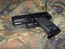 A gas blowback Heckler & Koch USP Compact replica made by KSC