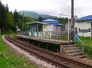 Due to damage caused by torrential rainfall on July 30, 2011, services on the section of line between Aizu-Kawaguchi and Tadami, which includes this station were replaced by a provisional bus service. The closed section resumed operations on 1 October 2022.[2]