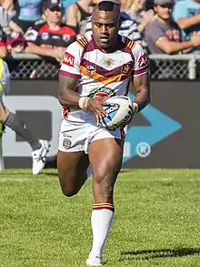 Akuila Uate (born 6 October 1987), also known by the nicknames of "Aku",[2] and "Akuila the Thriller",[3] is a former professional rugby league footballer who played on the wing. He was both a Fiji and Australian international.