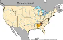 - ↑ NatureServe (2013). "Micropterus henshalli". IUCN Red List of Threatened Species. 2013: e.T15351329A19035171. doi:10.2305/IUCN.UK.2013-1.RLTS.T15351329A19035171.en. Retrieved 19 November 2021.
