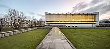 - ↑ Robson, Sheppard (2015), English: The main library of Lancaster University, with the Sir Alastair Pilkington Reading Room in the background., retrieved 27 July 2021