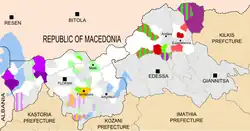Villages of Florina with speakers of Arvanitika in yellow