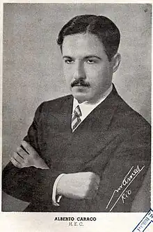 Albert Caraco was born Istanbul on 8 July 1919 to a Sephardi Jewish family.[3] His family relocated in Vienna, Prague and later in Berlin, before settling in Paris. He attended the Lycée Janson de Sailly and graduated from Ecole des Hautes Etudes Commerciales in 1939.[1] At the same year, Caraco and his family fled to South America due to Nazi threat and approaching World War II.[3] His family received Uruguayan citizenship and converted to Catholicism.[4] In early 1940s, Caraco published a series of poems and plays.[1]