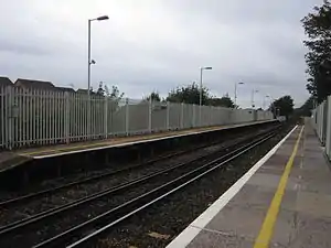 The station was staffed during peak hours until approximately 1990, after which the hut which served as a ticket office was demolished. By 2009 the old concrete shelters had been replaced with reinforced plastic shelters which are now the only features on the platforms. Ramps lead down to street level.