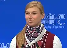 Alena Kaufman (Алена Владимировна Кауфман) is a Russian paralympic biathlete and skier who won two gold medals at the Sochi Paralympic Games[1] for 6,[2] and 10 km race respectively.[3][4][5] On March 12, 2014, she was congratulated by the Russian President Vladimir Putin for winning a bronze medal in 1 km cross-country skiing.[6] Previously, she also was a gold medalist at the 2006[7] and bronze one at the 2010 Winter Paralympics.[8]