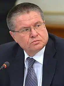 Alexey Valentinovich Ulyukaev (Russian: Алексе́й Валенти́нович Улюка́ев, IPA: [ɐlʲɪkˈsʲej vəlʲɪnʲˈtʲinəvʲɪtɕ ʊlʲʊˈka(j)ɪf]; born 23 March 1956) is a Russian politician, scientist, and economist. He has the federal state civilian service rank of 1st class Active State Councillor of the Russian Federation.[1]